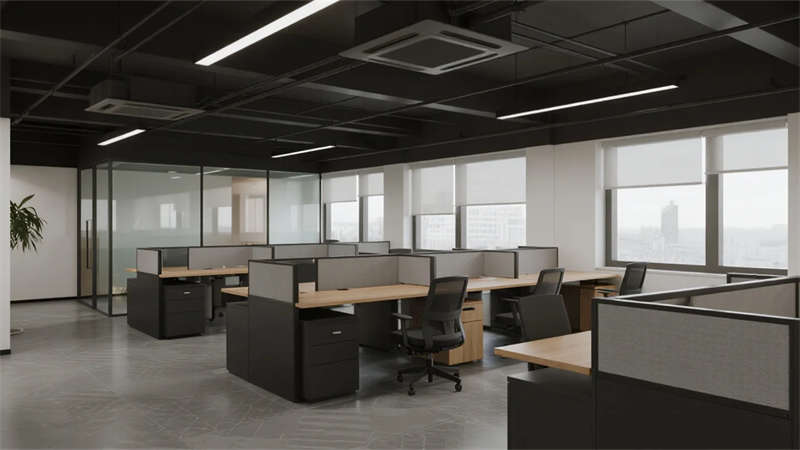 開放辦公區(qū)依托巨幅落地窗引入自然韻律,升降工位與模塊化家具賦予空間彈性;獨立辦公室通過垂直百葉調(diào)節(jié)光影私密性,暗藏式書柜燈光烘托沉穩(wěn)氣質(zhì)。核心協(xié)作區(qū)打破傳統(tǒng)封閉模式,弧形沙發(fā)與可書寫玻璃墻激發(fā)即興創(chuàng)意,而茶水間綠植墻與城市景觀吧臺,則在高效節(jié)奏中注入呼吸感。