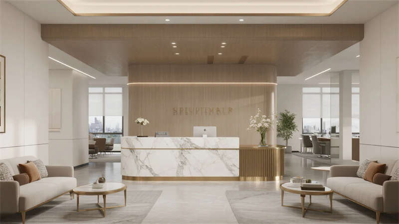 本設(shè)計(jì)以輕奢風(fēng)格為核心,打造一個(gè)優(yōu)雅而舒適的辦公環(huán)境。外觀采用現(xiàn)代建筑語(yǔ)言,玻璃幕墻與金屬細(xì)節(jié)相結(jié)合,彰顯高端氣質(zhì)。內(nèi)部空間注重細(xì)節(jié)與品質(zhì),接待區(qū)以大理石前臺(tái)和金屬裝飾營(yíng)造歡迎氛圍,開(kāi)放式辦公區(qū)布局靈活,配備簡(jiǎn)約家具和自然光元素,提升工作效率。會(huì)議室設(shè)計(jì)專業(yè)且智能,私人辦公室融合落地窗和 luxury 裝飾,提供靜謐工作空間。員工休息區(qū)與咖啡角注重舒適性,軟裝家具和溫馨 lighting 促進(jìn)放松與交流。走廊區(qū)域通過(guò)藝術(shù)墻面和 lighting 效果增強(qiáng)空間感,整體設(shè)計(jì)融合材質(zhì)對(duì)比與柔和色調(diào),營(yíng)造出精致而人性化的辦公體驗(yàn),強(qiáng)調(diào)美學(xué)與功能的平衡。