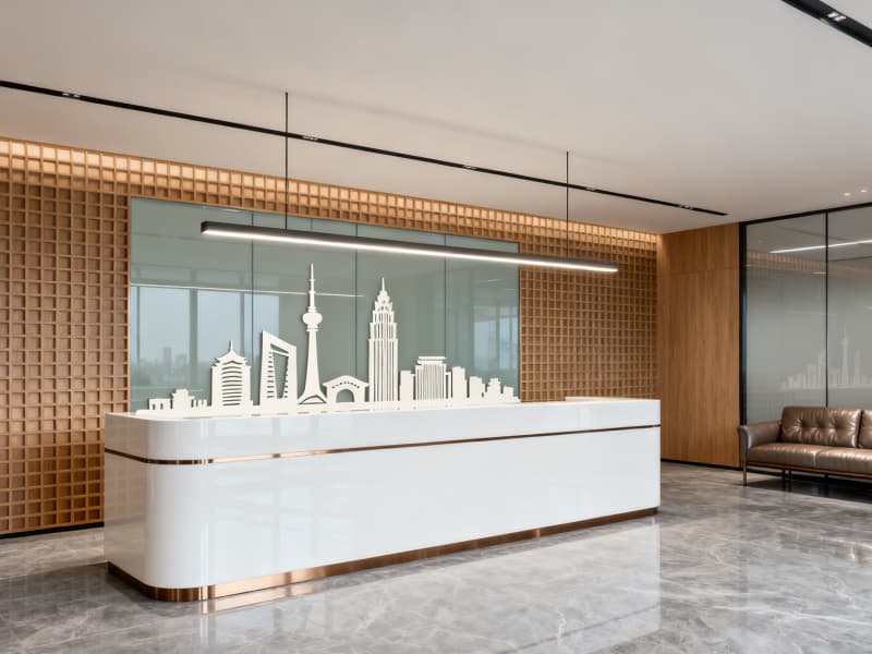 細節設計中,注重人性化與實用性,選用環保耐用的裝修材料,搭配無主燈設計與充足綠植,改善辦公環境;融入智能設備(無線充電、智能感應燈等)提升便捷度;地域元素通過裝飾畫、浮雕等形式巧妙呈現,增強空間歸屬感。整體設計既符合現代商務辦公的專業調性,又通過自然質感與人文細節,為企業打造兼具效率與溫度的優質辦公載體。