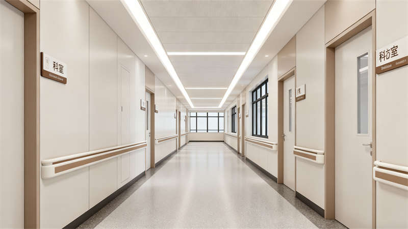 病房裝修以舒適、溫馨為重點,色彩選擇溫和雅致,搭配簡潔的家具,營造出類似家庭的氛圍,幫助患者放松心情,更好地恢復(fù)健康。走廊裝修注重采光與通行安全,墻面設(shè)計簡潔大方,避免復(fù)雜裝飾帶來的壓抑感。護士站裝修兼顧功能性與美觀性,合理設(shè)置工作區(qū)域,方便醫(yī)護人員與患者及家屬溝通。?