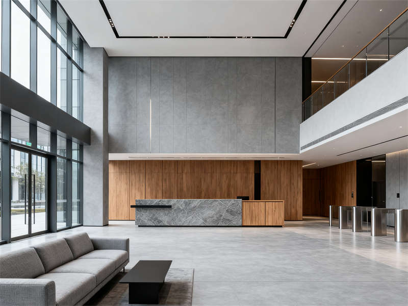 入口大堂以開闊格局為核心,淺灰地磚搭配低飽和木色前臺,弱化厚重感的同時(shí),用金屬線條勾勒細(xì)節(jié),讓第一印象既專業(yè)又通透。玻璃隔斷貫穿多個(gè)區(qū)域,在走廊處搭配木色門牌,既保證采光,又通過材質(zhì)呼應(yīng)強(qiáng)化整體感,避免空間割裂。