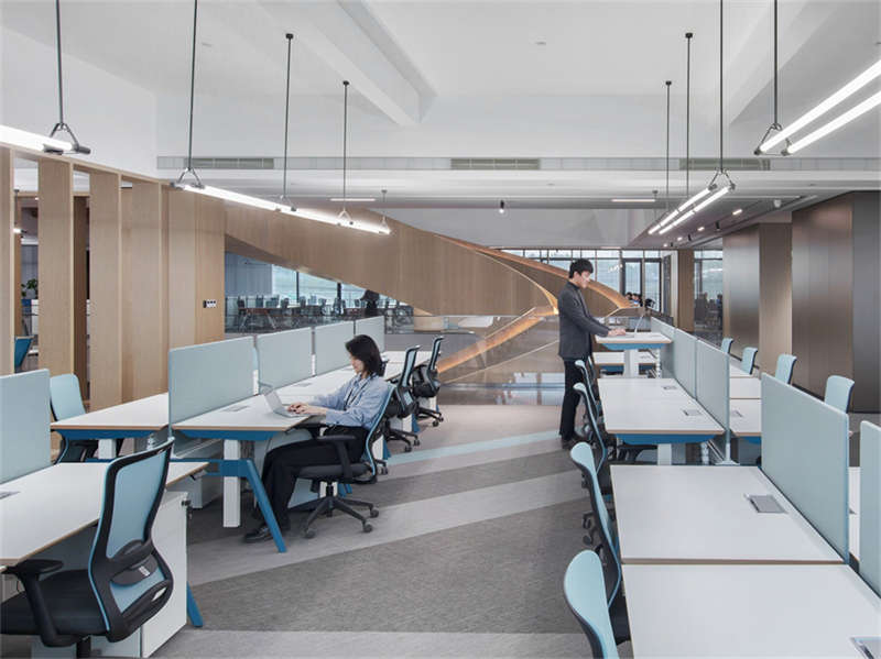 回望中庭,樓梯宛若一座沐浴在陽(yáng)光下的“游廊”,可開(kāi)啟天窗為所有樓層的員工提供充足的陽(yáng)光和新鮮空氣,在工作間隙讓頭腦徹底放松,中庭也成為企業(yè)的標(biāo)志性的身份特征。
