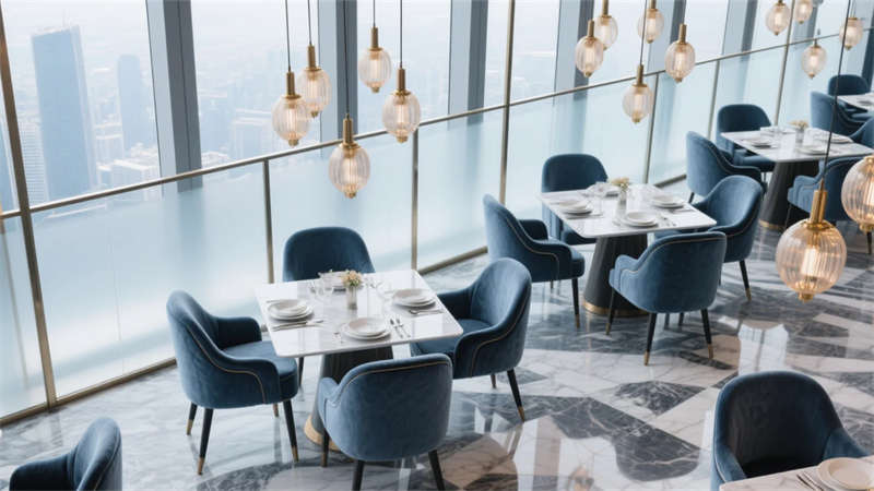 空間敘事聚焦于質(zhì)感細(xì)節(jié):皮革與絨面織物溫柔包裹休憩區(qū)域,定制吊燈灑落琥珀光暈,抽象藝術(shù)畫作點(diǎn)綴留白墻面。從高空餐廳的云端食趣到套房浴室的蒸汽氤氳,從大堂茶歇的咖啡香氣到泳池區(qū)的波光瀲滟,設(shè)計(jì)以人性化尺度打造多重感官體驗(yàn)。