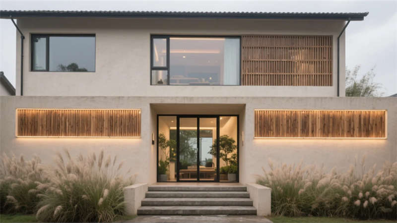 本案以“現(xiàn)代自然主義”為核心理念,將合肥山水肌理與當(dāng)代設(shè)計(jì)語(yǔ)言交融,打造一座會(huì)呼吸的城市棲居地。建筑外立面以淺米色微水泥為基底,橫向原木格柵與嵌入式線(xiàn)性光帶勾勒出簡(jiǎn)約輪廓,入口矮蒲葦隨風(fēng)輕搖,模糊室內(nèi)外界限。