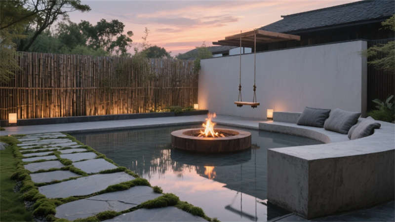 從庭院下沉式火塘的竹影搖曳,到接待臺(tái)金屬浮雕的抽象城市地圖,設(shè)計(jì)以克制的自然材質(zhì)、低飽和色系與智能化細(xì)節(jié),重構(gòu)現(xiàn)代人對(duì)“在地旅居”的想象——讓合肥不止于驛站,更成為一場(chǎng)沉浸式自然人文體驗(yàn)。