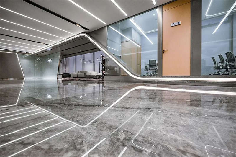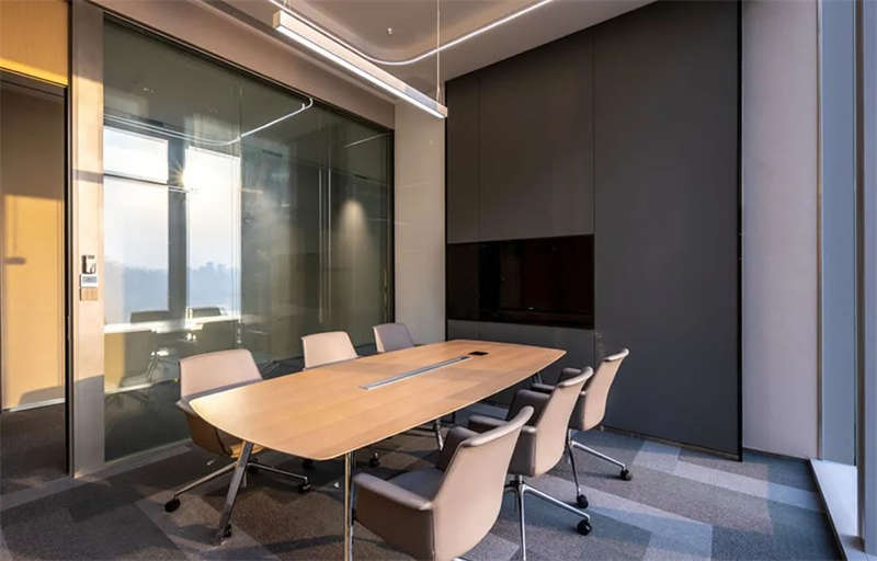 此辦公場所融合行業范式、藝術、辦公、會客和休閑功能,豐富的城市景觀與奢華的家具用材將空間美學統一起來,落地窗獲得更多明亮場域,空間通透舒朗,客戶進入空間能感受到簡潔明亮的氛圍。