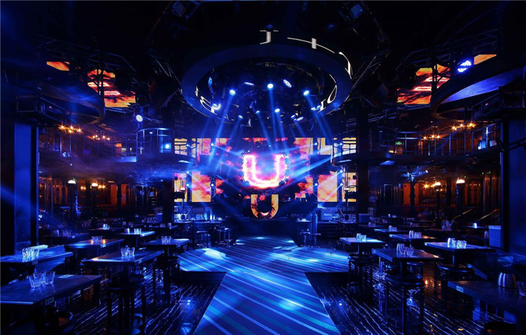 主舞臺背景為整面的LED智能大屏,配合音樂播放時下最潮流動感的畫面,正前方"U"字形DJ臺,結合創意燈光效果,更顯熱血酷炫.兩側對稱的空中秀廊是設計的一大亮點,透明的走廊,舞者可以在上面盡情舞動,360度全方位展現自己的舞姿.
