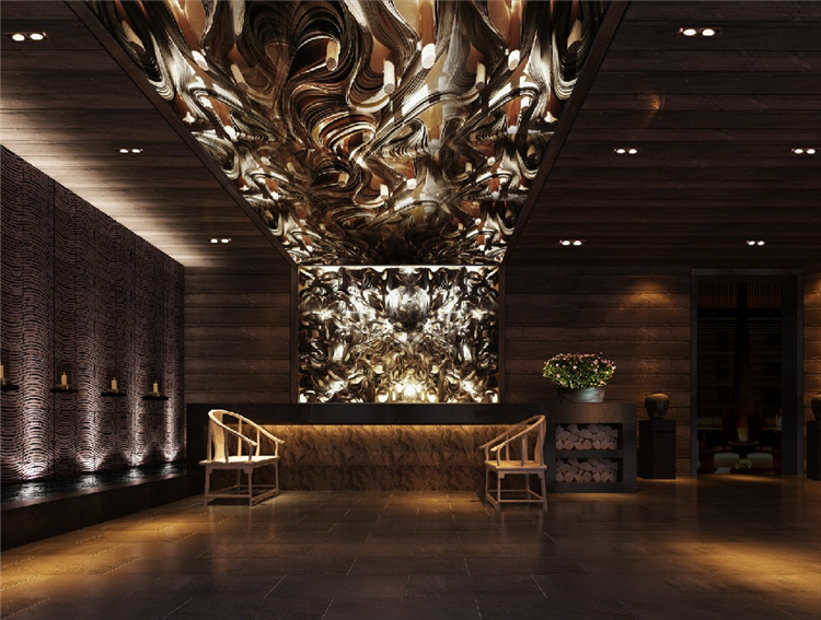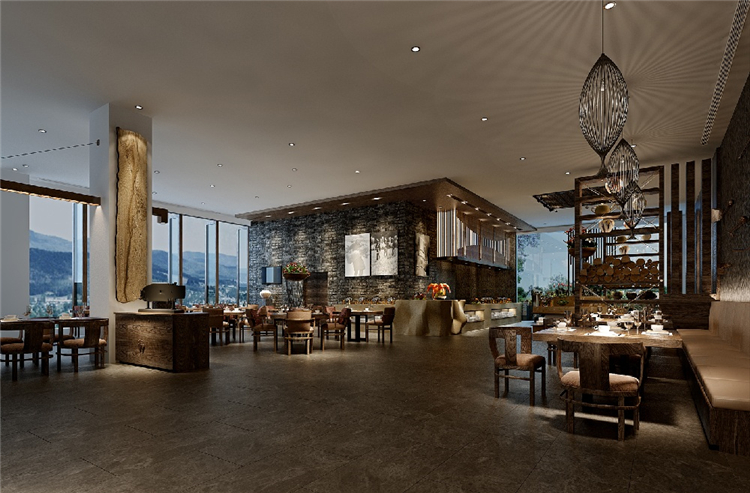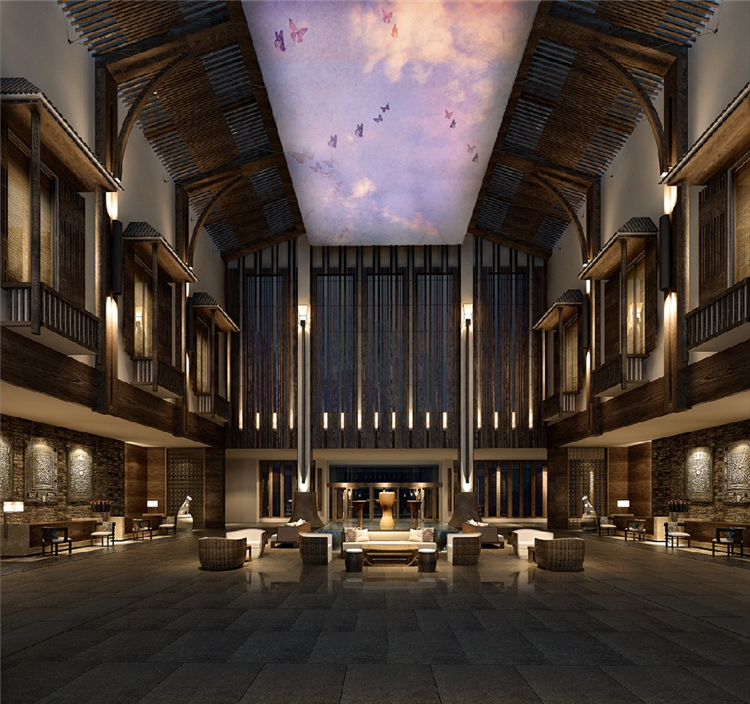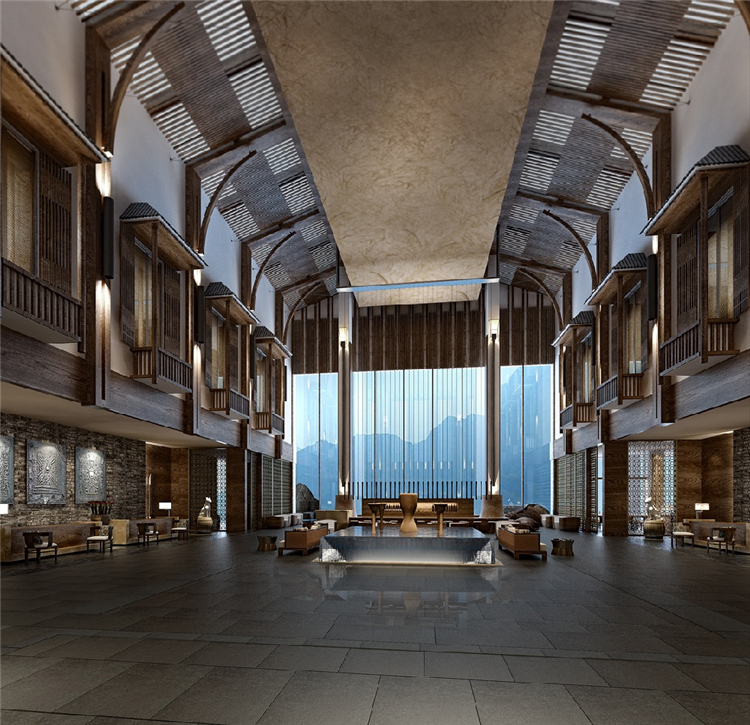 投資方希望打造一個具有民族特色又同時具備國際化背景的星級度假類型的酒店設(shè)計(jì)。對傳統(tǒng)文化的有機(jī)傳承和再創(chuàng)造是設(shè)計(jì)師始終思考的命題。以山、水、鼓、火、圖騰犬五大元素為主線貫穿于室內(nèi)設(shè)計(jì)中。