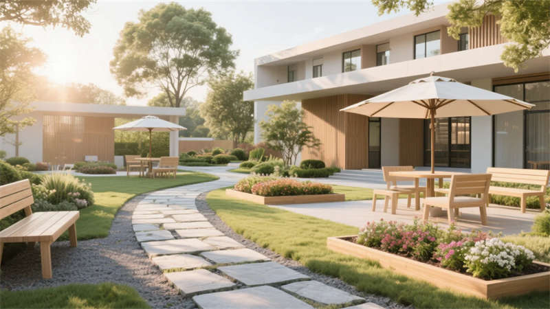 這套老年康養(yǎng)中心設(shè)計以現(xiàn)代簡約風(fēng)格為核心,營造一個溫馨、安全且充滿活力的生活空間。設(shè)計強(qiáng)調(diào)自然光與柔和色彩的融合,入口大廳以開闊布局和藝術(shù)元素傳遞家的溫暖,休息區(qū)則通過舒適沙發(fā)和綠植打造社交港灣。餐廳和活動室注重功能性,淺色調(diào)家具與靈活布局鼓勵日常互動,促進(jìn)社區(qū)歸屬感。居住單元采用圓角細(xì)節(jié)和私密氛圍,確保舒適休憩。康復(fù)訓(xùn)練區(qū)融入防滑設(shè)計和自然光,支持健康活動。戶外庭院成為心靈綠洲,石板步道與花壇提供寧靜放松。多功能廳則適應(yīng)多樣需求,增強(qiáng)空間活力。整體設(shè)計以適老化理念貫穿,避免繁雜裝飾,突出簡約美學(xué)與人性關(guān)懷,讓每位長者感受到尊重與陪伴,在簡約中體驗生活的美好。