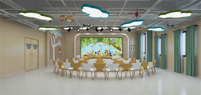 為了適應幼兒園教學活動的眾多需求,幼兒園活動教室在設計上要站在孩子的角度,綜合考慮孩子們的生理心理需求。寬敞的空間及良好的布局能讓孩子們感覺到舒適和溫馨并進而產生歸屬感。各個功能區域的劃分需要合理,各種設施需有利于孩子們自己動手參與并且有利于教學,材料的運用紀細節的功能提供更方便更環保更安全的學習娛樂環境。