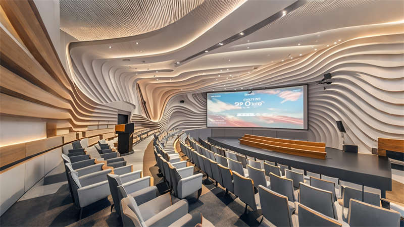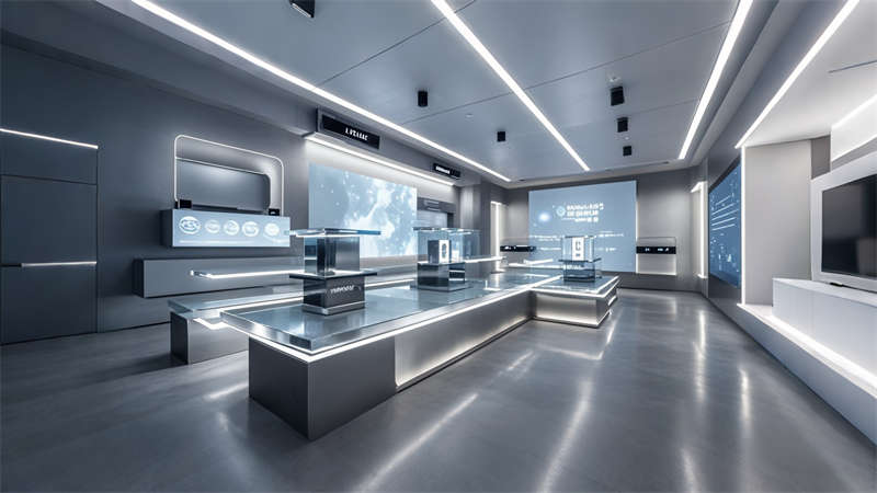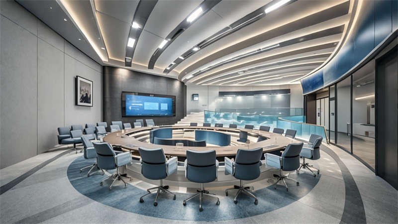 本 3000㎡辦公樓展廳采用 ' 科技人文 ' 設(shè)計理念,以灰白色為基調(diào),企業(yè)藍(lán)為點(diǎn)綴色,打造現(xiàn)代簡約風(fēng)格。空間規(guī)劃采用 ' 展辦融合 ' 模式,前廳設(shè)置 10 米通高數(shù)字藝術(shù)墻,產(chǎn)品區(qū)配置智能感應(yīng)展臺。辦公區(qū)采用模塊化家具系統(tǒng),搭配聲學(xué)處理隔斷。動線設(shè)計運(yùn)用環(huán)形參觀路線,通過藍(lán)色導(dǎo)視光帶串聯(lián)各功能區(qū)。材質(zhì)選用啞光金屬、木飾面與玻璃的混搭,科技感與溫潤感并重。照明系統(tǒng)采用 4000K 色溫 LED 線性燈,重點(diǎn)區(qū)域搭配軌道射燈。智能中控系統(tǒng)集成環(huán)境調(diào)節(jié)、安防監(jiān)控和數(shù)字展示功能,實(shí)現(xiàn)空間高效運(yùn)營。綠植墻和透光軟膜天花的設(shè)計,有效改善室內(nèi)微氣候。